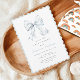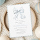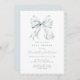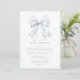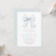 Mínimo convite de chá de fraldas que apresenta um arco azul elegante e bordas recortadas e em segundo plano.