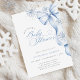 Comemore seu chá de fraldas de inverno com este elegante convite para flocos de neve. Apresentando um delicado arco azul, flocos de neve gelados e um roteiro gracioso, este design é perfeito para um chá de fraldas de menino ou qualquer celebração de inverno.