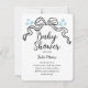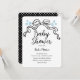 Este design de chá de fraldas preto e branco chic apresenta uma fita, arco e design.