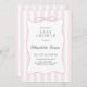 Celebre seu dia especial com este convite de chá de fraldas de faixa rosa. 🎀 apresentando um fundo listrado clássico e uma elegante design de fita, esta modelo é perfeita para chás de meninas. Personalize instantaneamente, impressão em casa ou envie digitalmente. Ideal para as mães modernas que amam o estilo do eterno.