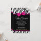 Um padrão de zebra preto e branco moderno com um gráfico de arco rosa-quente é apresentado neste convite divertido para chás de fraldas de 4,5" x 6,25". Perfeito para um chá de fraldas de menina!Os Designs são ilustrações/gráficos impressos - NÃO É REAL.