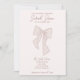 Anuncie a chegada da pequena princesa com nosso encantador Convite para Chá de fraldas de Garota com um doce design arco. Este convite adorável dá o tom para uma celebração alegre em homenagem à futura menina. A delicada ilustração do arco adiciona um toque de timidez e feminilidade ao convite, criando um tema visual adorável. A paleta de cores pode ser personalizada para corresponder ao seu esquema preferido, adicionando um toque personalizado ao design geral. Convide seus entes queridos a se juntar ao entusiasmo e antecipar receber o novo membro da família. Nosso Convite para Chá de fraldas de Menina com um arco é a maneira perfeita de compartilhar a alegria desta ocasião especial. Que comece a comemoração!