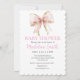 Bem-vindos aos seus convidados em estilo com o encantador convite à Chá de fraldas Coquette Pink. Esse convite maravilhosamente desenhado captura a delicada elegância da estética coqueta, com tons de branco suave, um arco rosa agudo e uma tipografia elegante.