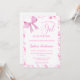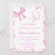 Celebre a chegada de uma garotinha em estilo com este charmoso convite para chás de fraldas. Apresentando um arco rosa pintado à mão e borda de aquarela macia, este design combina perfeitamente elegância e brincadeira. Personalize o texto para se adequar aos seus detalhes do evento, e chá a mãe para ser apaixonada e alegre. Ideal para chás de fraldas modernos, clássicos ou de temas doces.