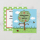 Um doce convite para celebrar um chá de fraldas. A carta apresenta uma cena colorida de jardim com uma macieira, um mamangabo zunhando e uma joia de pássaros esfregando no chão.