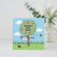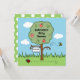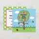 Um doce convite para celebrar um chá de fraldas. A carta apresenta uma cena colorida de jardim com uma macieira, um mamangabo zunhando e uma joia de pássaros esfregando no chão.
