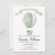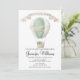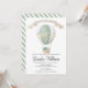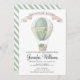 Elegante sábio verde 'Aventura espera' o temático convite de chá de fraldas neutro em relação ao gênero, mostrando um balão de ar de cor-d-água fofo e um pequeno bebê voando nele.