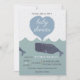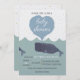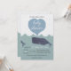 Coleção moderna personalizada e personalizada de convites para chás de fraldas de baleias em azul pastel, para uma celebração de chá de fraldas bonitinha, caprichosa e semelhante a conto de fadas, para um bebê ou uma menina. Apresenta uma ilustração de desenho de uma baleia de esperma fofa com bochechas rosadas jorrando, soprando uma nuvem em forma de coração, convidando seus entes queridos para um chá de fraldas. E um pouco de pontinho dourado. Convite para chá de fraldas de baleia.
