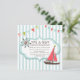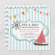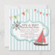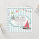 Helm and Sailboat NMaritime Stripes Chá de fraldas Banner Convite Ilustração de um veleiro, hélice, âncora e faixa de festas em faixas azuis e brancas. Diversão e convite único para chás de fraldas.