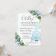Um convite para chás de fraldas de bebê com tema de distanciamento social ou quarentena é feito com um carro azul, balões, flores e folhagem tropical. Excelente de um rapaz dirigir por um chá de fraldas de desfile e um convite para a quarentena.