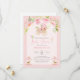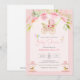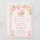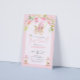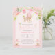 Berço prity floral rosa para bebês com rodas douradas e carrossel floral fofo, um convite elegante para o chá de fraldas.