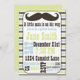 Celebre o nascimento iminente do seu homenzinho com este adorável convite de chá de fraldas com listras castanhas, azuis e verdes e um bigode marrom na moda.