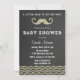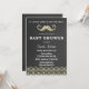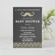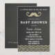 Chá de fraldas convite com design de bigode brilhante falso e fundo do quadro.
