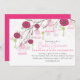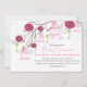 O Convite para Chás de fraldas moderno apresenta um design cor-de-rosa para flores e passagens. Veja a loja de caça ao lobo para mais convites para chuveiros de bebês! Para obter mais opções, pressione o botão de personalização laranja!