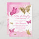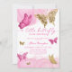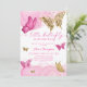 Convite para Chá de fraldas de Borboleta Dourada rosa, brilhante