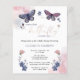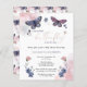 Uma borboleta está a caminho! Este bonito convite para chás de fraldas de borboletas é perfeito para um chá de menina. O design de tema fofo da borboleta apresenta lindas borboletas de aquarela e flores em tons de rosa e roxo. O sotaque dourado rosa para a palavra borboleta é o toque perfeito para terminar. Adicione todos os detalhes do seu chá de fraldas. Para mais personalização, clique no link "personalizar mais" e use a ferramenta design avançada para modificar este modelo.