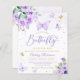Ouro roxo de orçamento um pouco de borboleta está no caminho do convite para chás de fraldas florais.