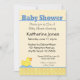 Chá de fraldas de pato de borracha com um pato bonito sentado em uma onda azul. Personalize com os detalhes de seu partido usando nosso modelo fácil.