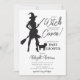 Silhueta de bruxas grávida moderna e bela tipografia de roteiro com Uma Bruxa Pequena Está a Caminho, dizendo que faz disto um simples mas na moda convite. É perfeito para chás de fraldas bruxos, góticos ou de halloween. Ver pontos coordenadores no nosso compro.