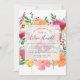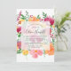 O convite elegante e moderno para chás de fraldas florais apresenta um fundo de flores de papoila de cor aquosa vibrante e folhas verdes. Os detalhes do seu chá de fraldas estão sobrepostos em um elemento branco puro em letras escura e escura elegantes acentuadas com caligrafia de estilo manuscrito.