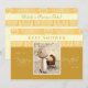 Doce Convite Ao Chá de fraldas. Você pode personalizar facilmente com as informações da sua festa. Apresentando uma adorável nova mãe com carruagem de bebê e design de guarda-chuva por Designs XG NYC. A cor principal é ouro/amarelo e creme. Consulte nossa loja para ver os acessórios correspondentes disponíveis.