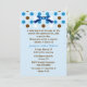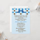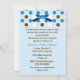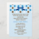 Bonito convite para o chá do casal azul. Gráficos de um arco bonito com aspecto azul e bolinhas azuis, castanhas e brancas decoram a parte superior do convite. O texto personalizado em azul e marrom está pronto para personalizar o evento especial. Adorável convite que o casal apreciará com todas as memórias do seu novo bebê.