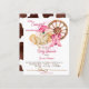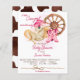 Pequena vaquinha no caminho dos cavalos equestres, chá de fraldas de modelo de fazenda de fazenda ocidental. Beige beige bonito com um chapéu cor-de-rosa, botas cor-de-rosa, roda, escrevendo cor-de-rosa e fita de robe. Muito bom para amantes de cavalos, fácil de fazer um tema de festa, misturar e combinar decoração.