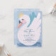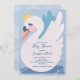 Ótima chá de fraldas de uma princesa cisne vestindo uma tiara coroa com fundo azul. Este convite personalizável é perfeito para chás de fraldas temáticos de cisne para meninas. A parte de trás deste convite para chá de fraldas da princesa do cisne tem a mesma cor azul com uma camada branca macia e delicada.