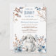 Coleção de Chás de fraldas de Coelhinhos de Woodland - Flores de Coelhinhos Bonitos e Azuis Rústicos Bem-vindos à nossa coleção de Chás de fraldas de Coelhinhos de Woodland, com um belo coelhinho de bebê cercado por delicadas flores azuis rústicas de cor d'água. Este design doce e elegante é perfeito para celebrar a chegada de um pequeno com um toque de charme inspirado na natureza. Quer você esteja planejando uma reunião acolhedora ou uma grande celebração, nossa coleção inclui convites perfeitamente coordenados, cartas de agradecimento, etiquetas de favorecimento e muito mais — tudo que você precisa para criar uma atmosfera mágica de floresta. Azuis suaves, tons terríveis, e florais brancos se juntam para definir o cenário perfeito para um chá de fraldas cheio de amor e alegria. Personalize seus itens facilmente para tornar seu evento realmente especial!