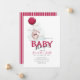Chá de fraldas de balão, Convite de coelho Um coelho bebê flutuante de balão personalizado para um chá de fraldas. Crie e personalize rapidamente o seu Chá de fraldas, vermelho e branco. Clique no botão "Personalizar!" para alterar o tamanho do texto, a cor do texto, o estilo da fonte e muito mais!