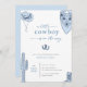Um pequeno vaqueiro está a caminho 🤠 Nossos modelos de convite para chás de fraldas de cowboy azul-de-JY são a forma perfeita de celebrar o novo menino a caminho com um chá de fraldas temático ocidental. Perfeito para um chá de fraldas de menino, estes convites para chás de fraldas de vaqueiro são a escolha perfeita. O chá de fraldas LEVI, um pequeno cowboy convidado, apresenta um fundo branco brilhante com cowboy e elementos ocidentais em tons de azul como uma bandana, um chapéu de cowboy, cacto, ferraduras e botas de cowboy, aliado à frase 'um cowboy está a caminho' usando um roteiro manuscrito, serif e sans serif fonts em azul para acrescentar interesse visual ao seu convite para o chá de fraldas ocidental. Personalize este convite para chá de fraldas de vaqueiro adicionando nomes, data, hora, local e outros detalhes. chá de fraldas de vaquinha, pequeno vaqueiro está a caminho, convites para chás de fraldas de vaqueiro, convite para chá de fraldas de vaqueiro, convite para chá de fraldas de vaqueiro, convite para beberrinho de vaquinha, convite para vaqueiro
