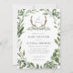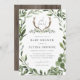 Convide o seu convidado com o nosso elegante e moderno convite para o chá de fraldas de cervos de lenhador, que apresenta verde eucalipto garland e água-color veado antler. Personalize com seus detalhes de chá de fraldas em layout simples e fonte elegante de estilo manuscrito.