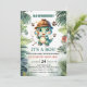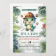 Convite para chá de fraldas de dinossauro bonito e colorido, mude o texto de menino para menina e personalize o restante do texto para qualquer coisa que você quiser.