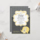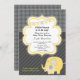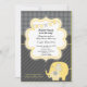 Convite para Chá de fraldas com elefante amarelo e fundo de cinza. Perfeito para um chá de fraldas de gênero neutro.