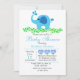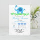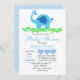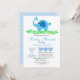 Convite para Chá de fraldas de Elefante Azul Bonito. O fundo do coração azul e os corações azuis com a palavra amor.