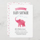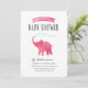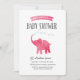 Convite para chás de fraldas bonitos e doces, que apresenta uma adorável água pulverizada com elefante cor-de-água rosa e uma tipografia química. A coordenação de itens de cor de água rosa está disponível na nossa coleção de Aquarelas.