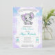 chá de fraldas floral de elefante de aquarela Este convite para chá de fraldas de elefante de aquarela apresenta um elefante giro, um coração azul bebê. Ideal do chá de fraldas do elefante de um próximo menino.