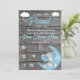 Muito fofo Elefante/Chá de fraldas de amendoim com estrelas e nuvens, prata, azul e cinzas. Fundo de madeira. Todos os campos são editáveis. Adequado para aniversário ou Chás de fraldas, chá de Fralda, gole e veja.