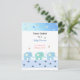 Uma fofa com três elefantes em tons de azul. Pequenas abelhas se agitando. Fronteiras bonitas o acendem. Personalize com as informações do chá de fraldas conforme desejado.