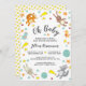 Celebre a mamã para estar com este belo convite de chá de fraldas com ilustrações bonitinhas de animais misturadas a estrelas de tiro e lua - adicione os detalhes da sua festa para personalizar. O fundo apresenta um padrão de estrelas amarelas. Excelente para uma menina ou chá de bebê - fofo e divertido, mas clássico e eterno, o convite perfeito para celebrar a mãe e o recém-nascido.