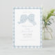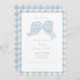 Convite para chá de fraldas de fita azul-branca para arco