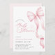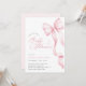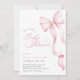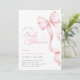 Convite de Chá de fraldas de Fita de Arco Rosa. Este convite elegante apresenta um encantador arco cor-de-rosa pincelado e um roteiro manuscrito romântico, perfeito para um chá de menina caprichosa. A fita chic e a design de pré-disquete adicionam um toque de sofisticação, enquanto a modelo editável permite uma fácil personalização. Crie um convite bonito e memorável para o seu evento especial.