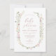 Este convite para chás de fraldas caprichosos e elegantes apresenta lindas e delicadas flores silvestres de aquarela, junto ao convite para criar a design oval moderna. Perfeito para primavera e chás de fraldas de verão. Coloque os sotaques agudos das abelhas e das borboletas, e personalize o texto com suas informações de chá de fraldas.