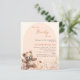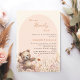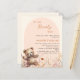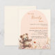 Podemos esperar Chá de fraldas. Um fundo creme, cor bege e um arco colorido de pêssego. Decorado com flores silvestres de cor aquática em bege, rosa e um urso de pelúcia feliz. 1 folha = 1 convite impresso de borda a borda.