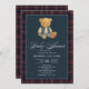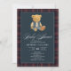 Traga o charme de pré-disquete para a sua celebração com nosso Convite para Chá de fraldas de Urso. Apresentando um lindo ursinho de pelúcia em uma roupa esportiva segurando um futebol americano, este design combina calor lúdico com elegância refinada. Um clássico fundo de tartã escocês vermelho e marinho adiciona textura rica e apelo ao eterno, enquanto a caligrafia elegante e uma fonte tradicional de serifa definem um tom sofisticado. Perfeito para bruços, festas de jardim, ou chás de tarde, este convite captura a alegria, o estilo e o sentimento de receber um pouco.