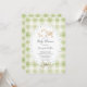 Celebre a chegada do seu pequeno com o nosso encantador Bobo Pequeno Convite para Chás de fraldas de Gansos. Apresentando uma adorável design de um ganso mama brincando perseguindo seu bebê contra um delicioso fundo de pranchas de gingham verde, este convite é enquadrado com uma borda branca escalficada para um toque extra de elegância. Perfeito por dar um tom alegre para o seu chá de fraldas, convida os convidados a se juntarem às diversão e festividades enquanto você se prepara para receber seu novo pacote de alegria. Torne a sua celebração memorável com este convite caprichoso e animador.