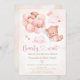 Isto podemos esperar muito, o convite para Chá de fraldas do Urso de Teddy é perfeito para o seu evento de ursos de pelúcia e fofinho! Bonita "podemos esperar", moça rosa com o tema do ursinho.