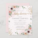 Um convite bonito para chás de fraldas com flores pintadas à mão e folhas com sotaque de ouro.