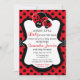 Uma doce mocinha está a caminho e que melhor maneira de convidar todos os seus amigos e família, mas com um convite adorável à joia? Apresenta um quadro de mamãe e joaninha com um fundo de bolinhas vermelho e preto.