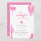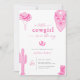 Uma pequena vaquinha está a caminho 🤠 Nossos convites para chuveiros de bebê cor-de-rosa, Nossos bebebezinhos, são a forma perfeita de celebrar o novo bebê a caminho com um chá de fraldas temático ocidental. Perfeito para uma chá de fraldas de menina para a vaqueira do coração da futura mãe, esses convites para chás de fraldas de vaquinha rosa modernos são a escolha perfeita. O chá de fraldas da LORETTA, uma pequena cowgirl, convida a design, apresenta um fundo branco brilhante com cowgirl e elementos ocidentais em tons de rosa, como uma bandana, um chapéu de cowgirl, cacto, ferraduras e botas de cowgirl, aliado à frase "uma cowgirl está a caminho", usando fontes serif e sans serif a rosa para acrescentar interesse visual ao seu chá de fraldas ocidental convite. Personalize este convite de chá de fraldas da vaquinha adicionando nomes, data, hora, local e outros detalhes. chá de fraldas ocidental, convite para vaquinha, chá de fraldas de vaquinha, chá de fraldas de vaquinha, chá de fraldas, chá de fraldas de menina